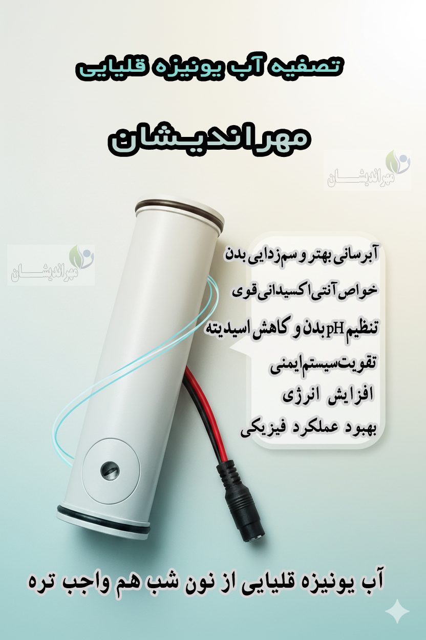 - امكان توليد يك ليتر آب يونيزه قليايي در زمان 20 دقيقه.